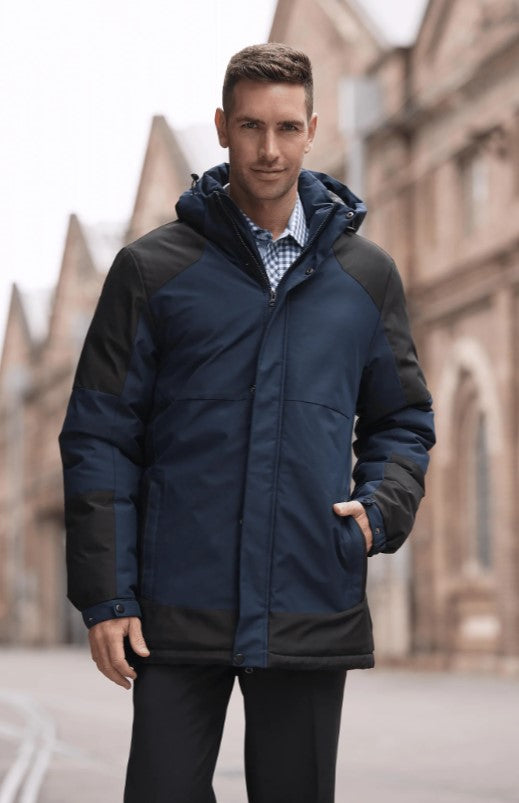 Fabric: Outer 150gm 100% polyester twill with membrane Inner 100% taffeta lining with polyester padding WP 5000 | BP 5000 Features: Heavy padded 2 side and 2 inside chest pockets Detachable hood with peak Extra body length with twin head main zipper Adjustable elasticated cuff Internal zipper access for decoration