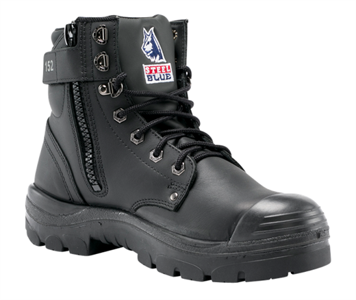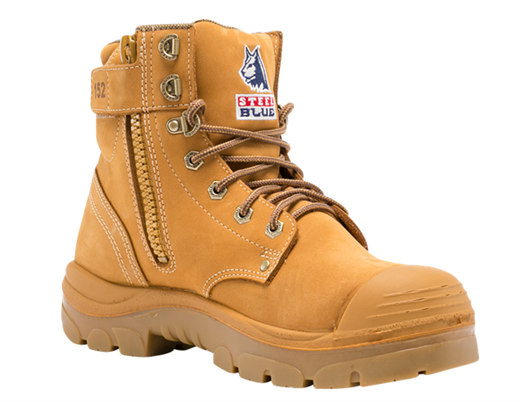 The Argyle® Zip: TPU / Bump Cap is a Men’s bump cap work boot with an industrial grade side zip for ease of access. Including laces to ensure a secure and comfortable fit, this safety boot is a popular choice for Tilers, Doc Workers, Plumbers, Warehouse Staff and Couriers. This safety boot is made from premium Water Resistant Leather and includes a 200J Steel Toe Cap for ultimate protection. The hard-wearing Polyurethane Bump Cap that covers the toe area of the boot is directly moulded as part of the midsole and made from the same highly durable material as our TPU Outsole. The TPU Outsole is heat resistant to 130°C, offers Anti-Static Properties and Slip & Oil resistance. All Steel Blue boots include our Trisole® Comfort Technology works to cushions your feet, knees, hips and lower back from day-to-day fatigue. The Argyle® Zip: TPU / Bump Cap is available in two premium Leather choices, Black Full Grain Leather or Wheat coloured Nubuck Leather.